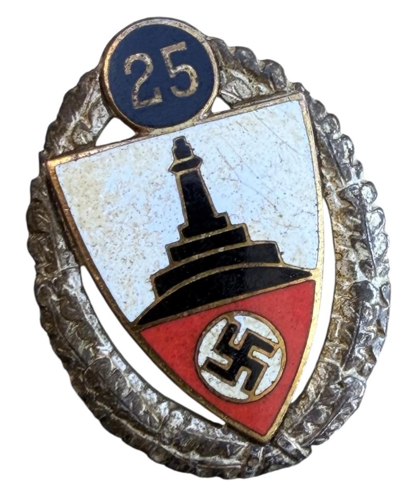 25 Years Member Badge Kyffhäuser Bund Nice used 25 years menbers badge “Kyffhäuser Bund” Marked on its back “Ges, Gesch.” In used but very good condition.