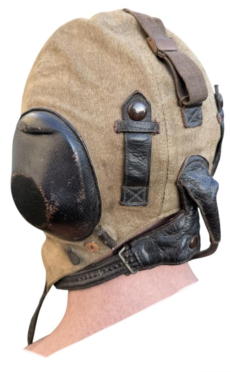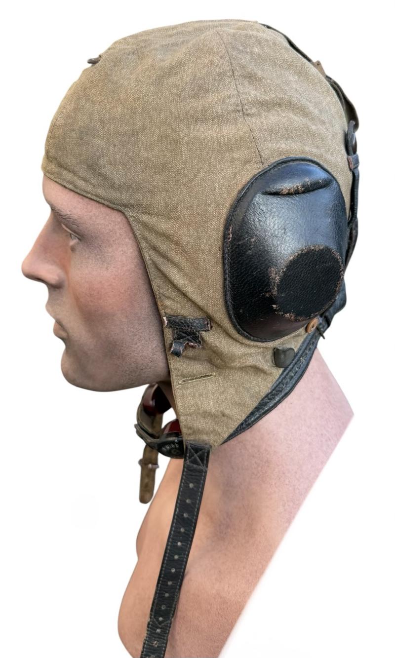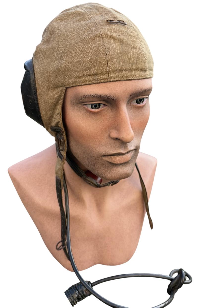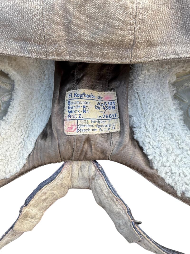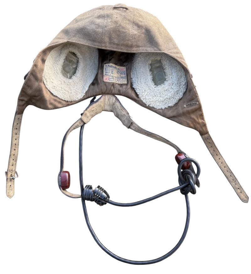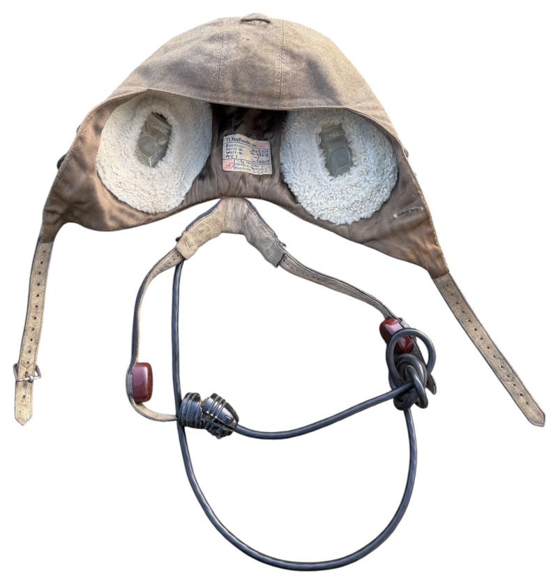 “Flieger Kopfhaube” nice used Luftwaffe Pilot/Aircrew summer flight cap, with its original cable, throat microphone and earphones inside.