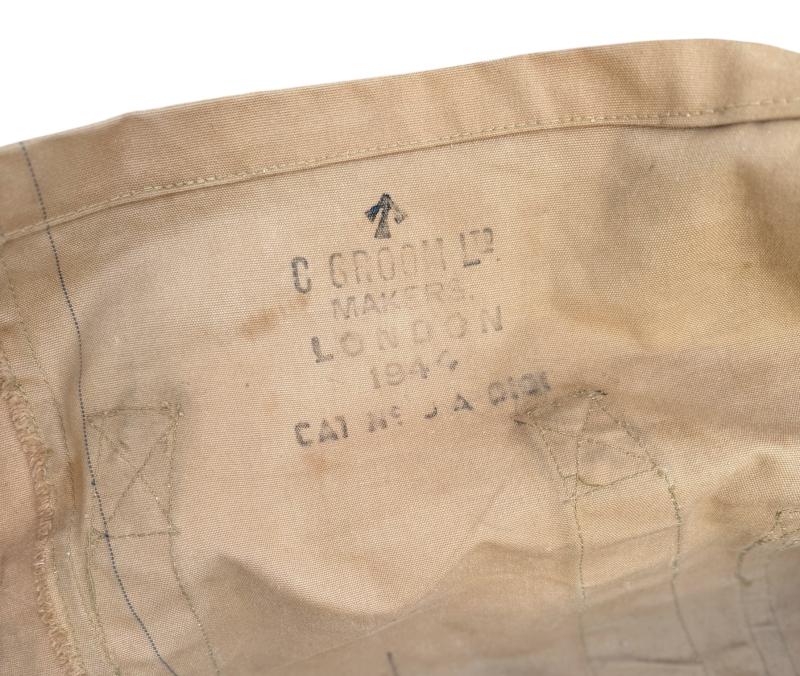 “Holdall” carrying bag. Would hold the Officers folding bed, sleeping bag, clothing and personal items for transport. Nicely maker marked “C.Groom Ltd. Makers, London” and dated “1941”.