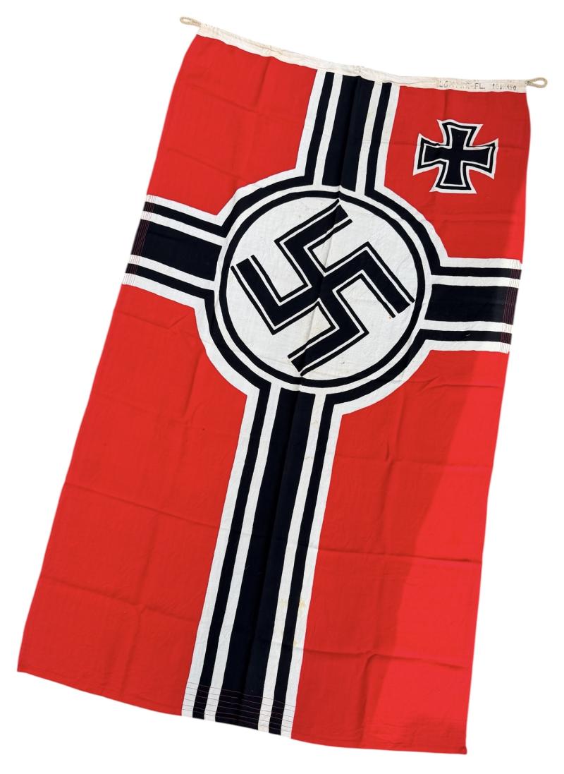 Reichs Kriegsfahne Very nice used Reichs Kriegsfahne The flag is marked “LOH. RK FL” In very good size “170cm x 100cm” in near mint condition. Great for display! Hard to find these days!