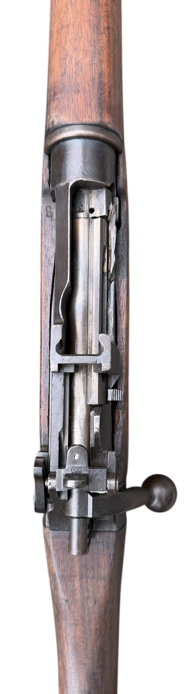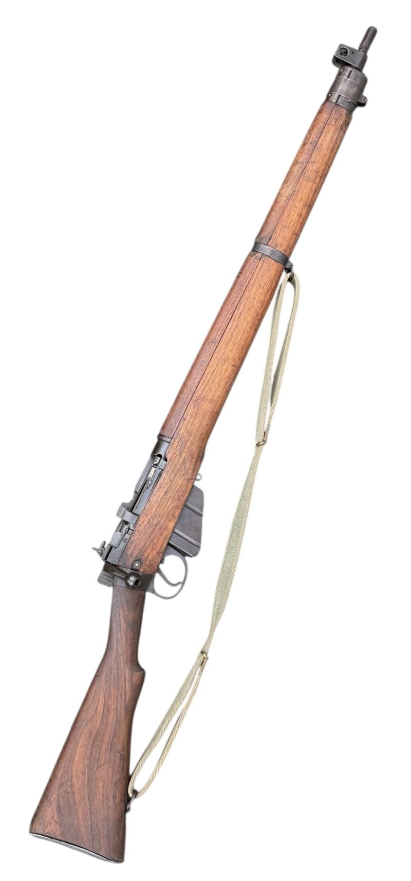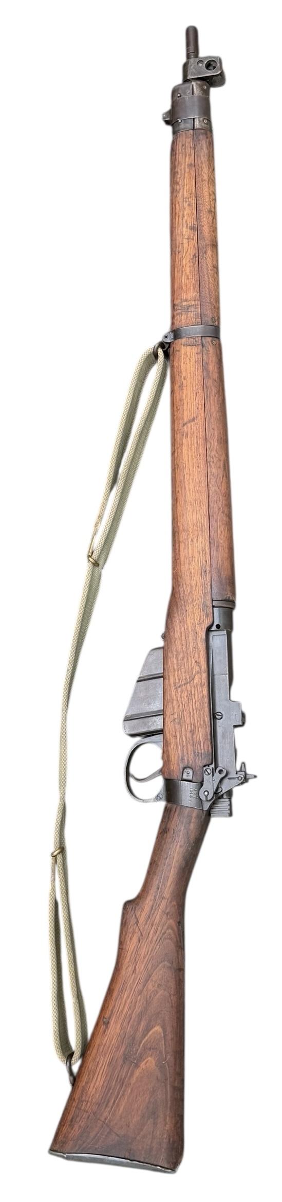 The “Lee Enfield” MKI number 4 was a standard British WW2 weapon Cal. 303 British with a 10 round box magazine. Dated “1943”. Fantastic de-activated bolt action rifle in used but very good condition.