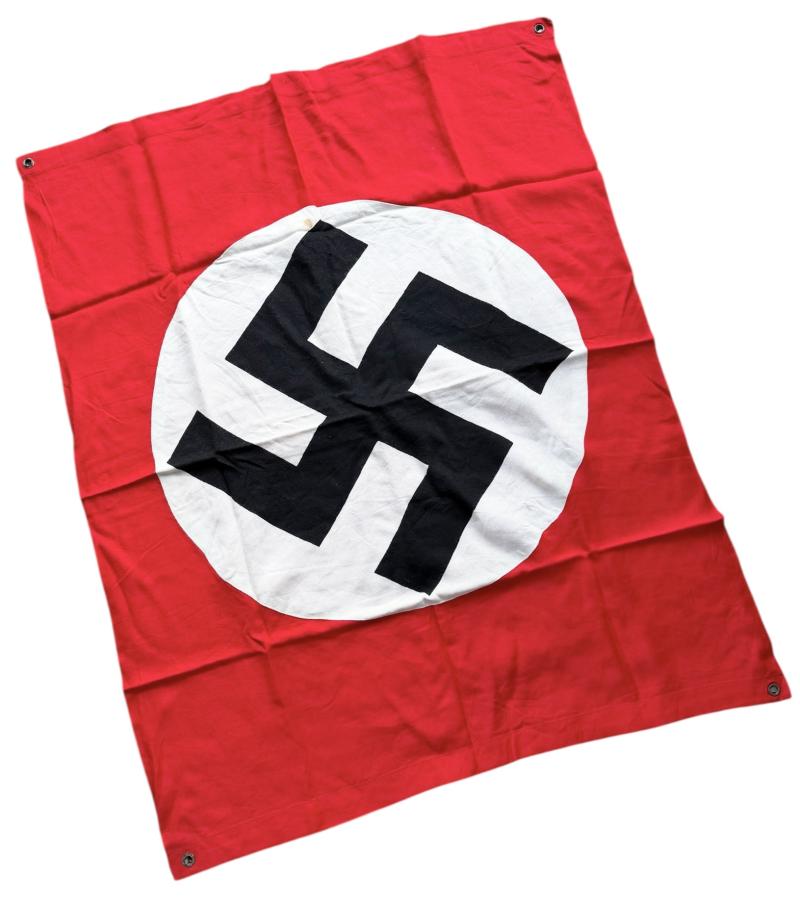 This size was used on “Kubel wagen, Swimmwagen and heavy motorcycle’s with side car”. For the troops in the spearhead of the attack. So support fighter planes did not destroy there own troops! Flag has a few minor moth nips. But overall in very good condition.