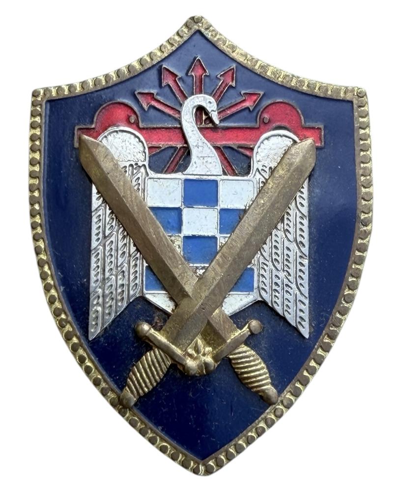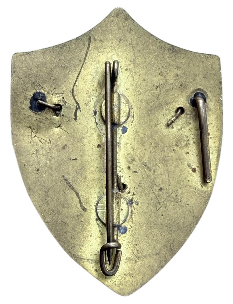 Post WWII Spanish Franco Fascist Falange Youth Enamel Pinback PB Badge Nice made badge with its original attachment needle In used but in very good condition