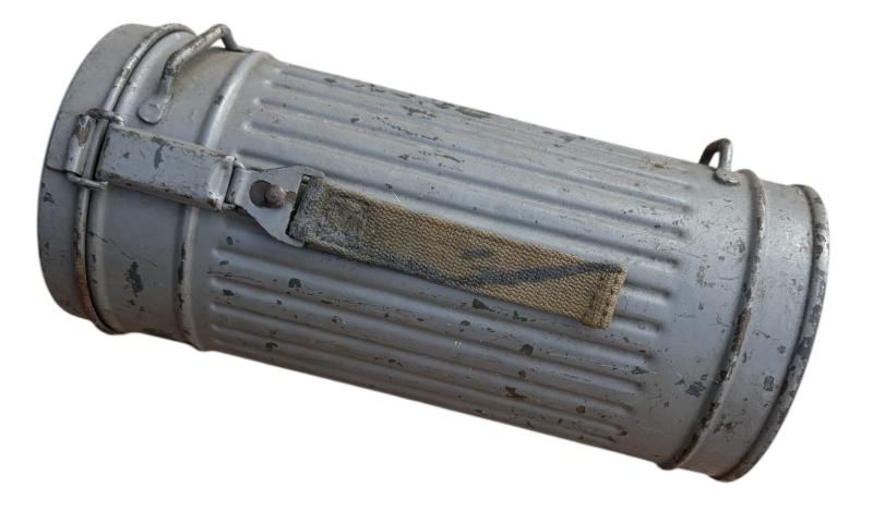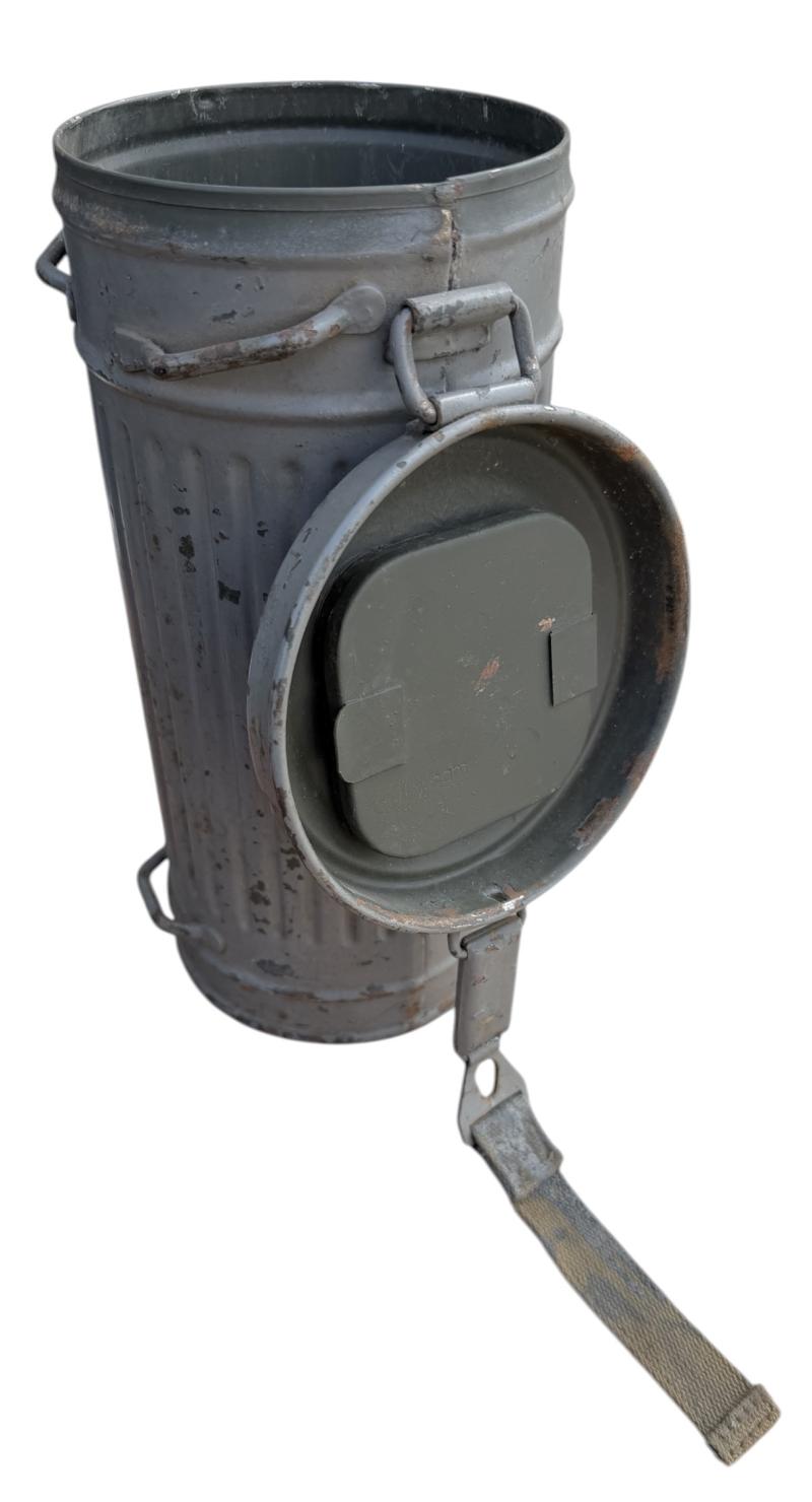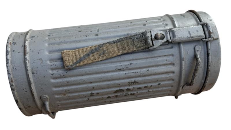Kriegsmarine M31 Gasmask Cannister Used but very nice Kriegsmarine M31 gasmask cannister. In Kriegsmarine vessel camo paint. Opening strap present. Overall in used but in very good condition.