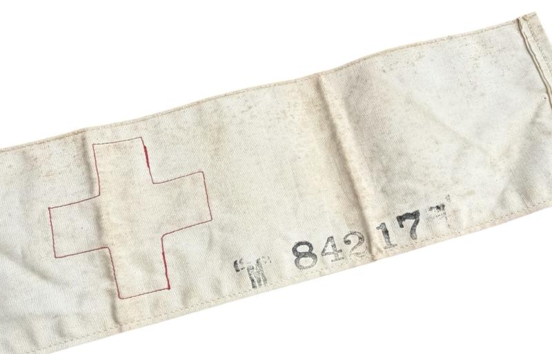 US WW2 Medic Armband Nice use US WW2 Medic armband with typical US WW2 Medic number. Overal a very nice US WW2 Medic armband in used but good condition.