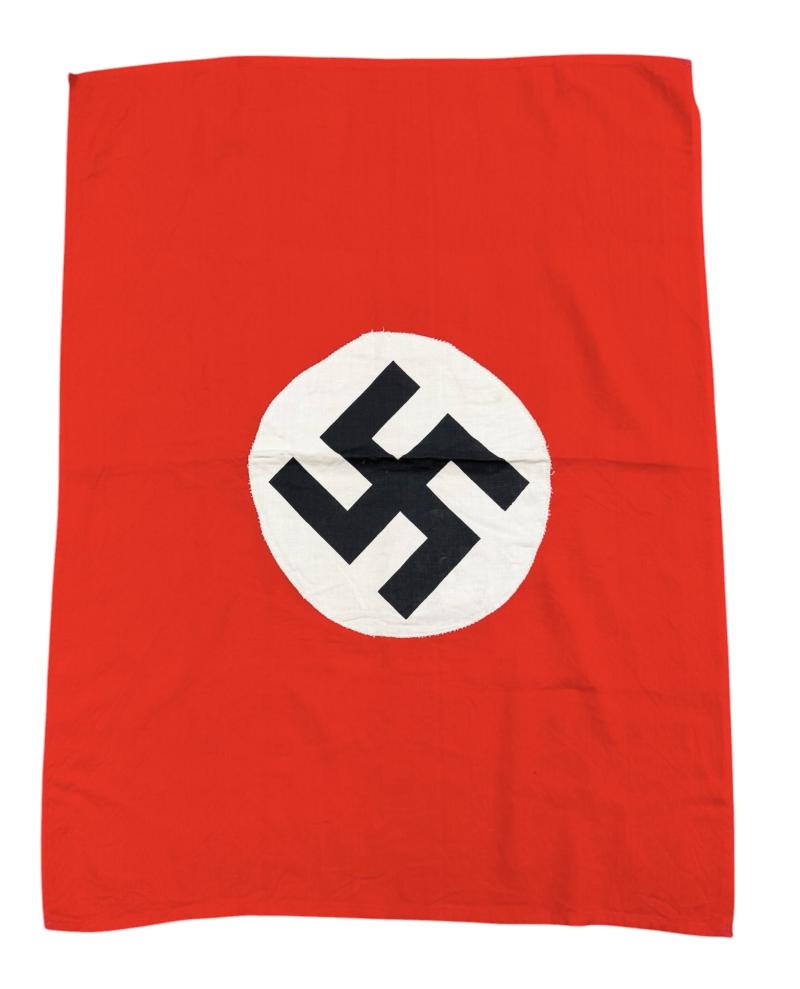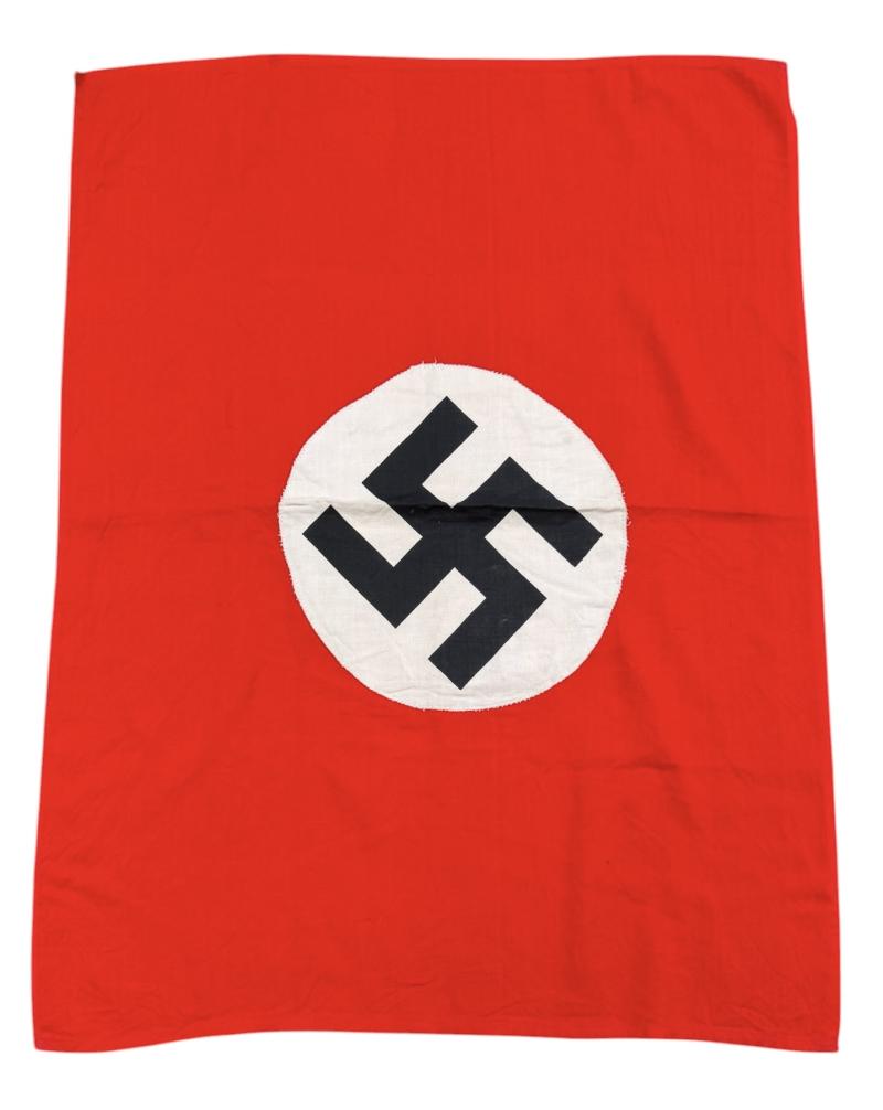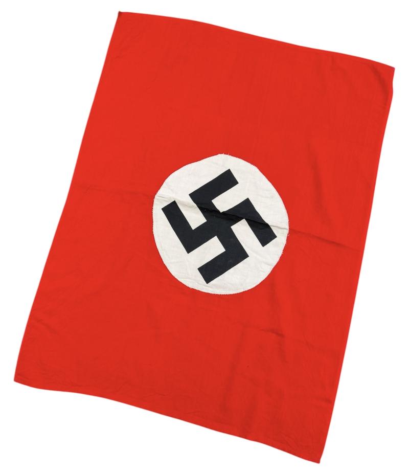 Small size Third Reich Hausfahne Very nice decorative small size Third Reich so-called “Hausfahne” in size “74”cm x “57”cm With “swastika” on both sides. In used but in outstanding condition.