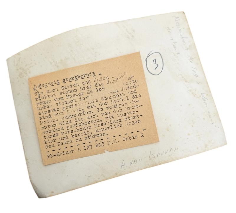 Luftwaffe Press Photograph (PK Bild) Nice original and official Luftwaffe “Press” photograph With ME109 airplanes “Jederzeit Startbereit” “Propaganda Kompanie” der Luftwaffe” In good condition.