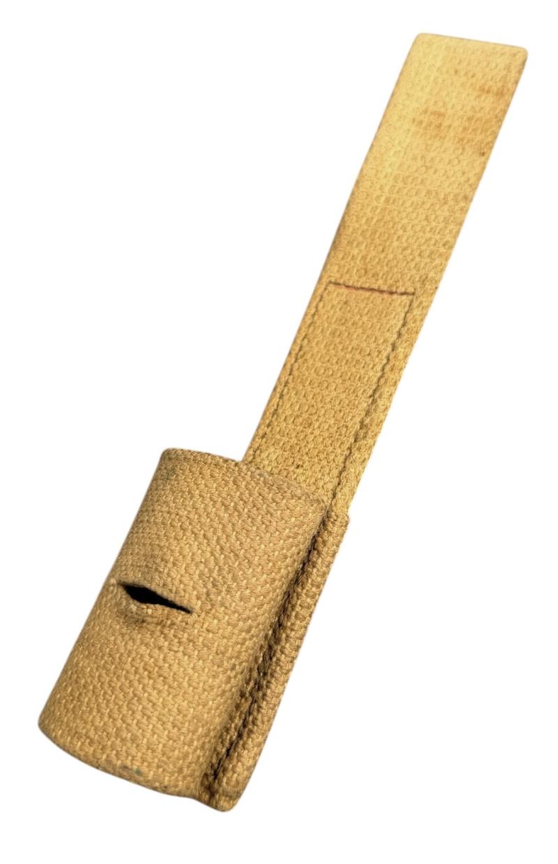 British WW2 Bayonet Frog Nice used British WW2 webbing bayonet frog Marker marked in its back but hard to read In used but in very good condition.