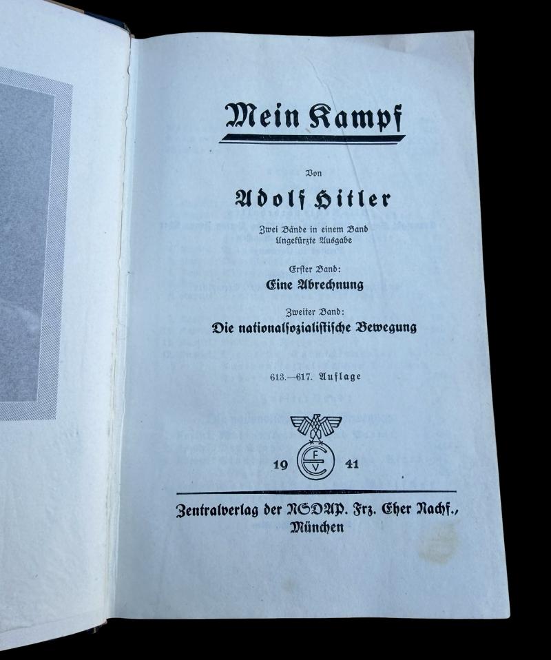 Very rare to find! “1941” dated “Adolf Hitlers Mein Kampf” book. mariage version Signed by