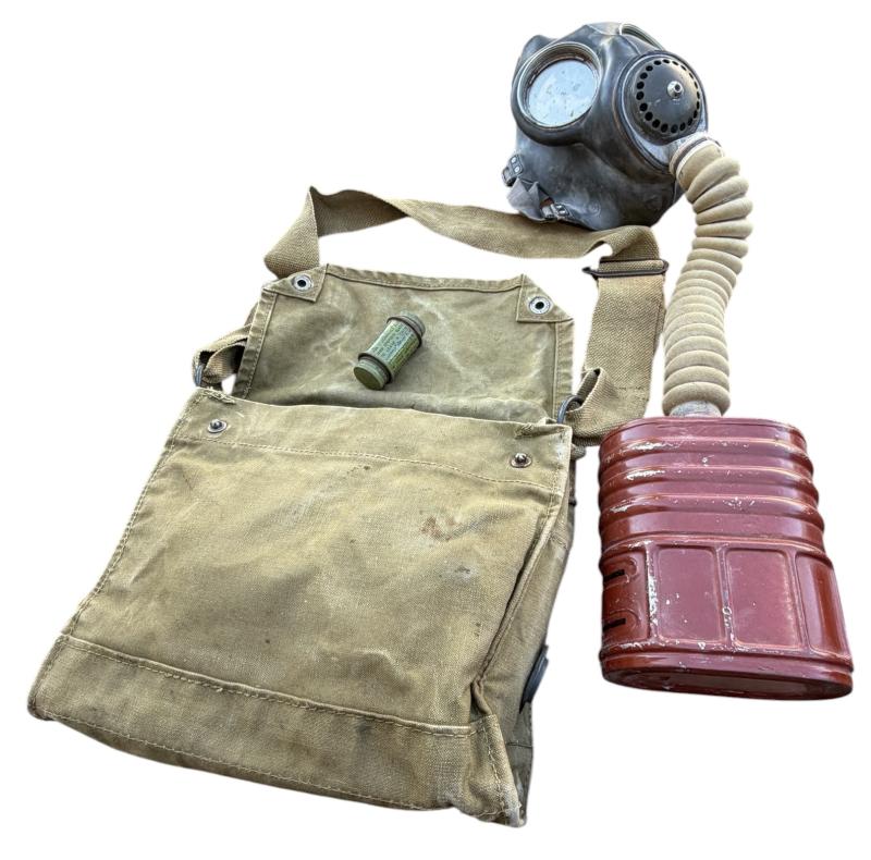Nice used early model number 4 MKIII British WW2 gasmask and gasmask carrying bag dated “1941” its filter is dated “1942”. Rubber in good condition.
