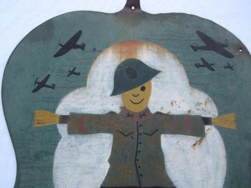 Metal Sign Soldiers Café Dutch pre 1940's "In de Vogel-verschrikker" Very nice decoratif, hand painted metal sign with a Dutch soldier. In very good condition!