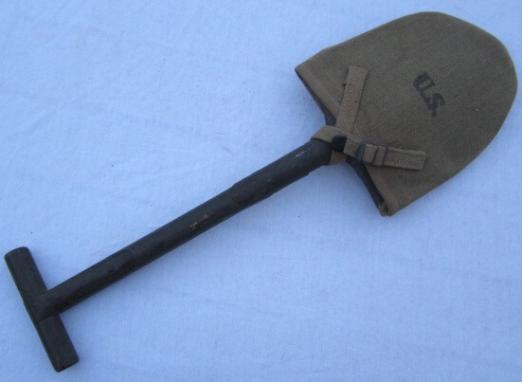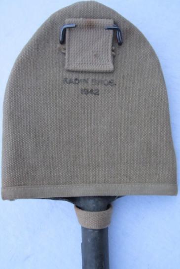 US WW2 T Shovel A very nice US WW2 T shovel, with a nice cover. Cover is nicely maker marked and dated "Kadin Bros 1942" The shovel is "US" marked and in 99% of its original paint In near mint condition!