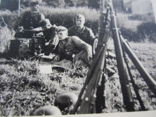 The SS DD Helmets laying in the grass at the front and there rifle's .