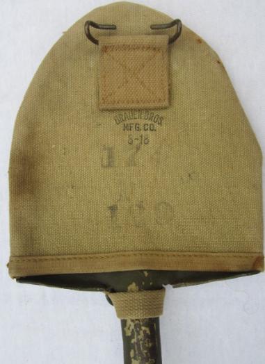 US WW2 T Shovel In original canvas pouch, made by "Brauer Bros MFG Co." 1918 dated But WW2 re-used, the shovel is US marked In nice used condition!