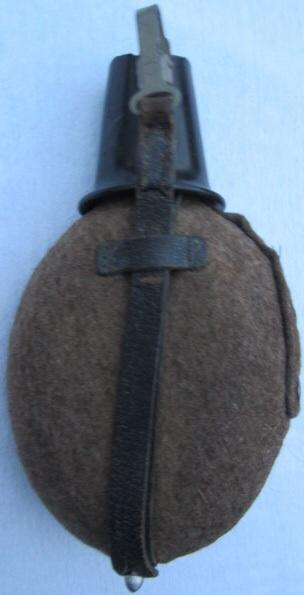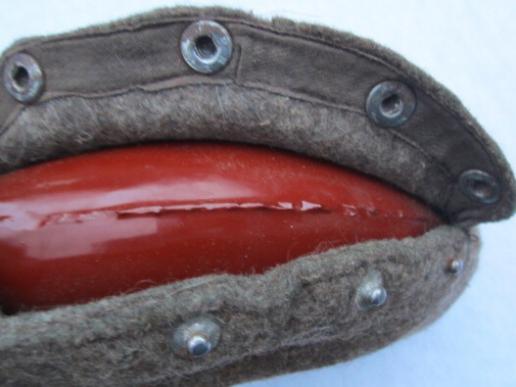 The felt cover is nicely stamped, but hard to read, the canteen is a nice red painted late war canteen!