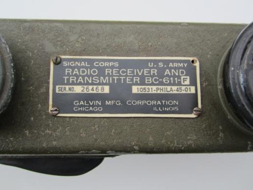 US WW2 Walki Talki BC 611 F Hard to find US WW2 Walki Talki with original canvas strap Made by "Calvin MFG. Corporation, Chicago ill." Dated 1945 in good condition!
