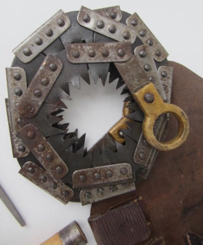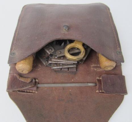 British WW2 Folding Chain Saw Very nice and complete British WW2 folding chain saw In its original leather pouch, complete with tool, sharpening tool and its original wooden grips. In very good condition.