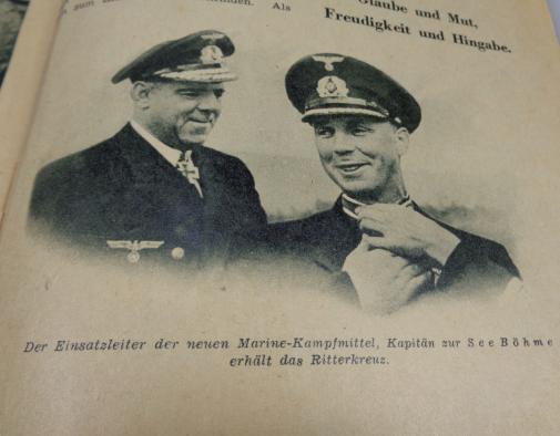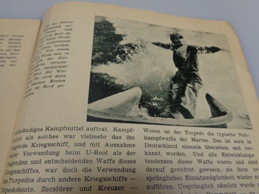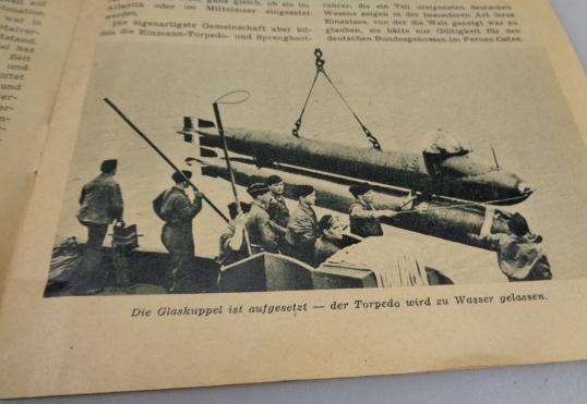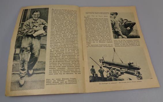 These men went alone with a small "Submarine" with a "Torpedo" or a small fast boot full with explosiv's in full speed against an enemy ship and should jump shortly before impacked from there vessel to swim back to there own men. Ofcource this was so dangerous, that most of them got killed in action. Very nice and rare flyer in very good condition.