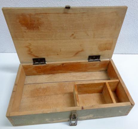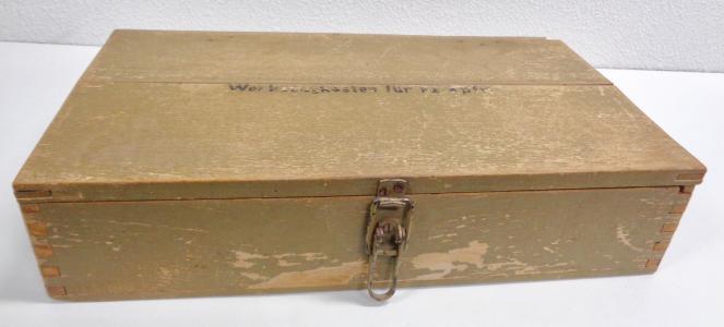 Wehrmacht wooden Panzer toolbox "Werkzeug Kasten Für Panzerkampfwagen" Very nice wooden toolbox in original paint and with inside frame. In used but good condition.