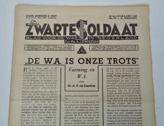 Dutch NSB Newspaper De Zwarte Soldaat Edition about the "WA" (Weer Afdeling) Dated "1941" in very good condition.