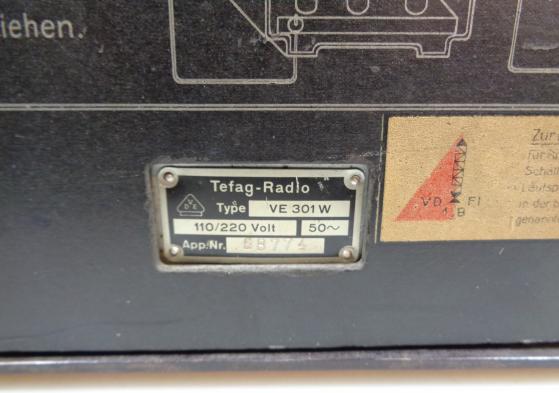 Made by "Tefag" (back plate and radio both "Tefag" marked) the bakelite is not damaged and in perfect condition. Overal a very nice radio in very good condition. Hard to find now these day's!