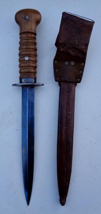 (Non matching numbers) blade with its original bleu finnish. Overal a very nice dagger in very good condition.