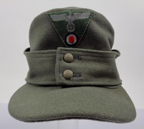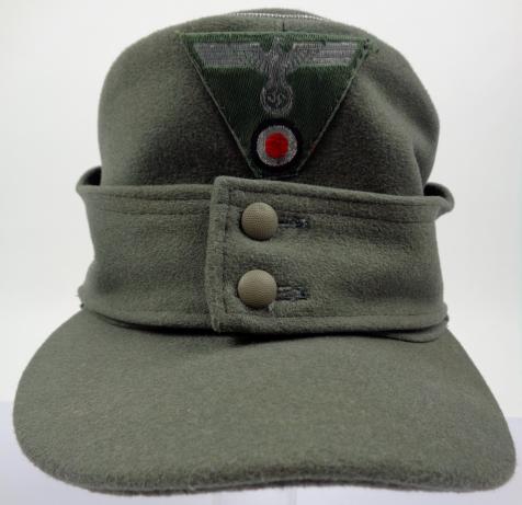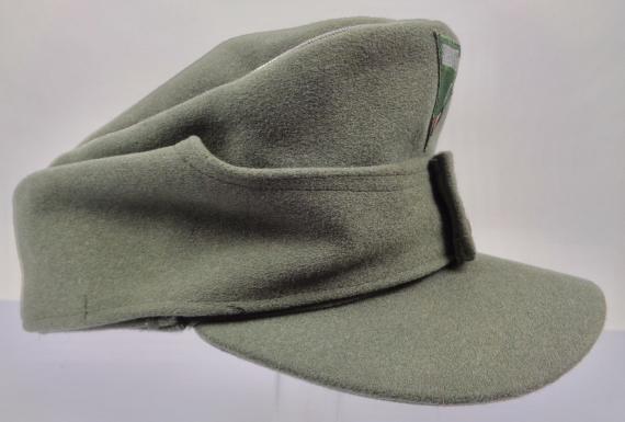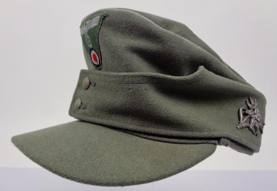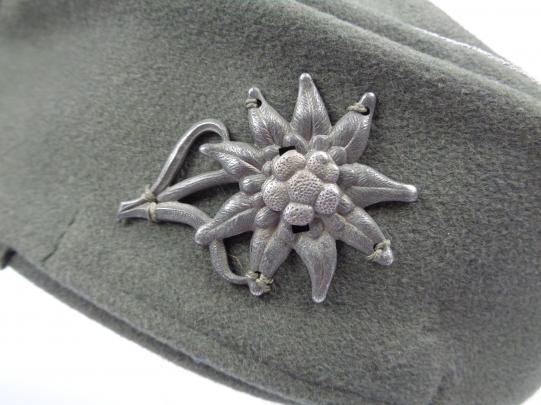 Very nice Wehrmacht Gebirgsjäger Officers M43 cap "Einheitsmutze 43" with BeVo Officers insignia and metal cap "Edelweiss" badge.