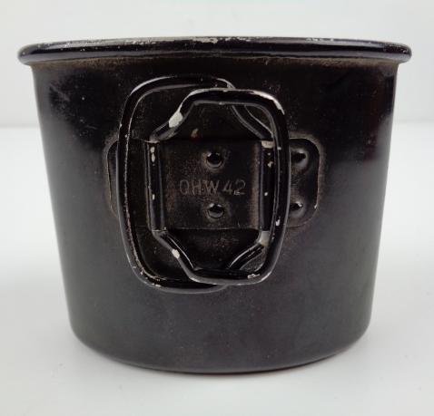 Very nice Wehrmacht M31 canteen with aluminium cup. Nicely maker marked "OHM" and dated "1942"
