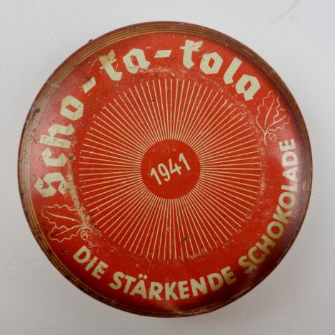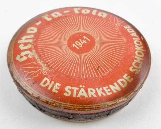 Wehrmacht Cho-Ka-Kola Can with content Very nice Sho-Ka-Kola can with its original chocolate (2 parts) 1941 dated and in very good condition.