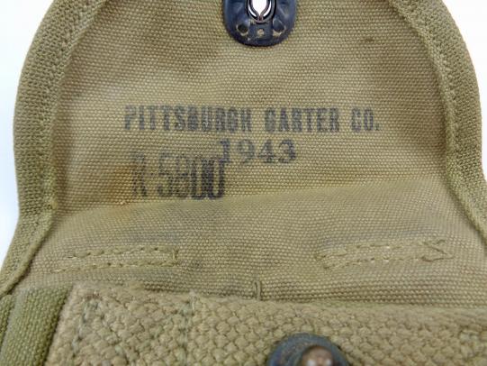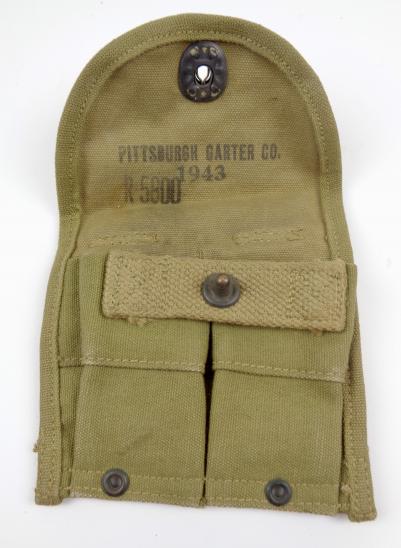 US WW2 M1 Carbine Magazine Pouch Nice used US WW2 M1 carbine pouch which would hold two 15 round box magazine's. Nicely maker marked "Pittsburgh Garter Co" and dated "1943" In nice used condition.