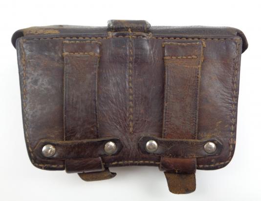 Nice used Russian WW2 pig skin leather "Mosin-Nagant" pouch which would holt 4 stripper clibs with 5 rounds. In used but good en smooth leather condition.