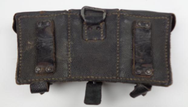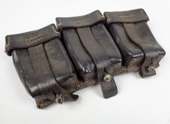 K98 Ammo Pouch Nice used K98 ammo pouch. Would hold 30 rounds K98 ammo (Cal. 8x57) Maker marked and dated "1942" In used but hood condition.