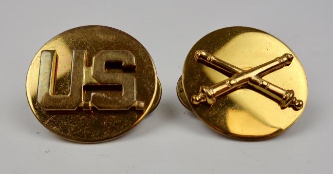 US WW2 Artillery Collar Disk set Nice US WW2 Artilley collar disk set for the “Class A” tunic. In very good condition.