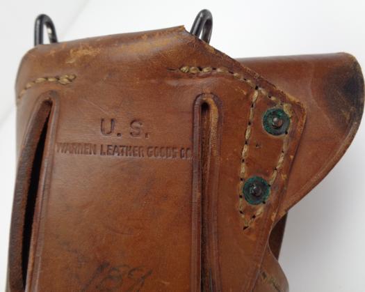 US WW2 Model 1911 Pistol Holster Very nice US WW2 model 1911 pistol holster Nicely maker marked “US Warren Leather Goods Co.” With piece of leather leg string, In very good condition.