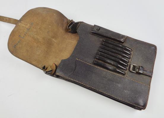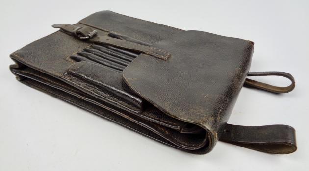 Wehrmacht named black leather Mapcase Very nice used and named Wehrmacht mapcase. Marker marked "Cresse" and dated "1941" The mapcase is nemad "Hans Leinbach" In used but very good condition.