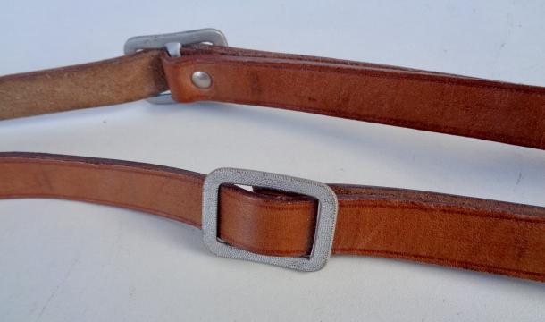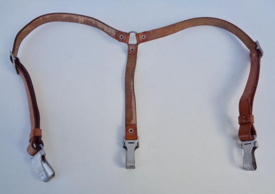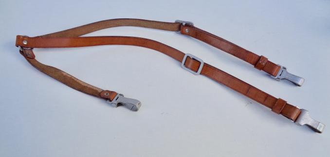 Light brown leather Hitler-Jugend Y strap with nice “Assmann” and “D.R.G.M.” Marked metal parts.