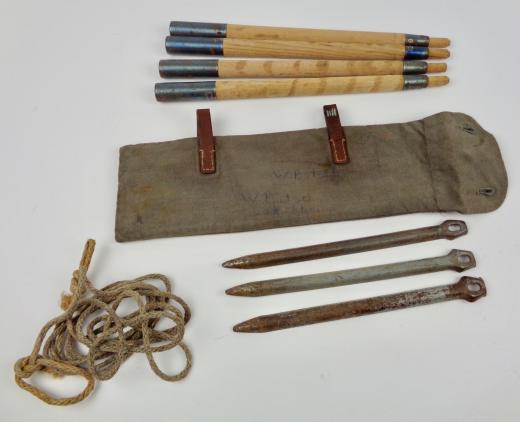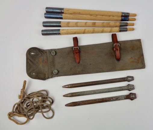 Wehrmacht Tentpoles and Peg's in Pouch Very nice near mint Wehrmacht tentpoles and tent peg's and one original tent cord in original Wehrmacht tentpoles/peg pouch. In very good condition.