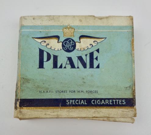 British WW2 N.A.A.F.I. Cigarette Package Nice used carton package of British WW2 N.A.A.F.I. Stores for H.M. Forces. cigarettes “Plane Cigarettes” nice used decorative package.