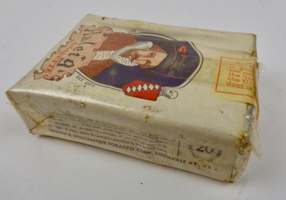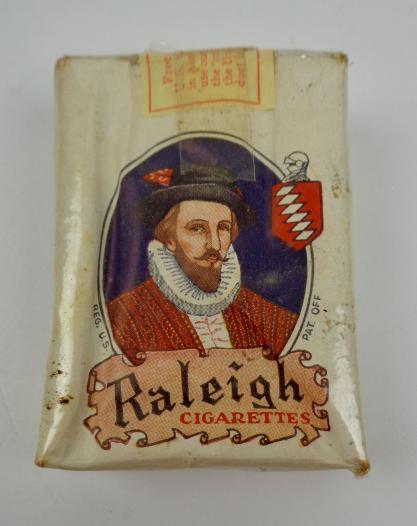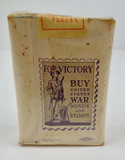 US WW2 Sigarettes Nice package with content of US WW2 “Raleigh” sigarettes. With military tax label and with “War Bonds” propagand om its back. In good condition.