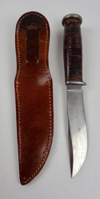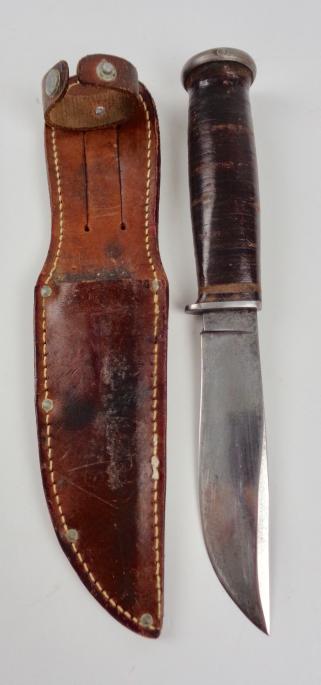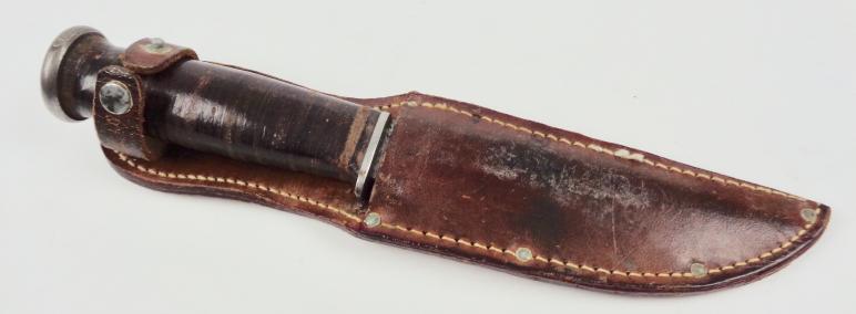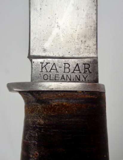 US WW2 Ka-Bar Combat Knife Made by “Olean N.Y.” this nice small US WW2 Ka-Bar combat knife in its original leather scabbard. Nice knife in used but very good condition.