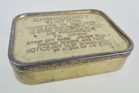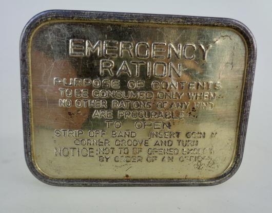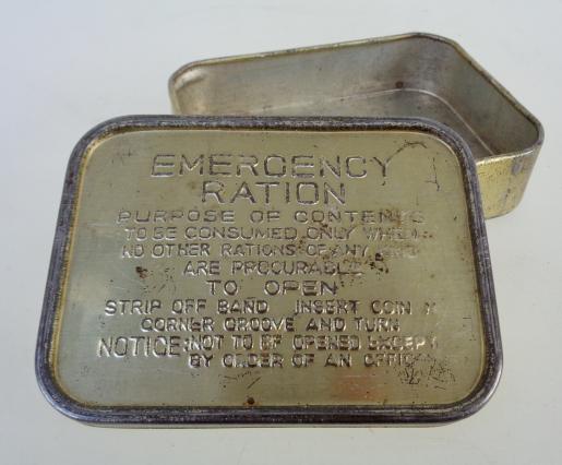 British WW2 Emercency Ration Tin Very nice metal tin, British WW2 enercency ration. In used but very good condition.
