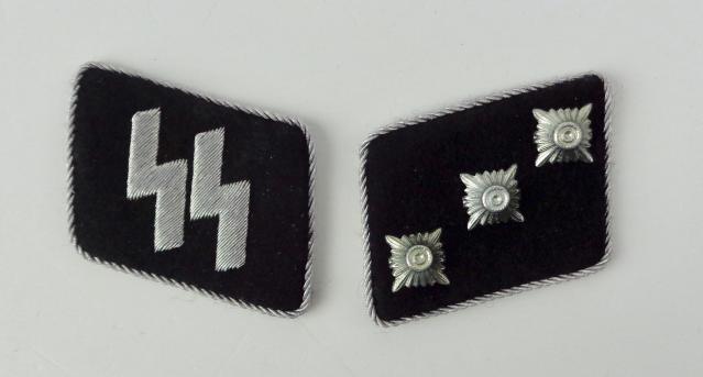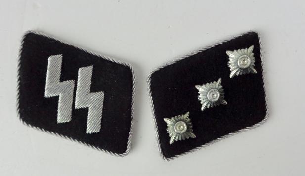 WaffenSS Untersturmfuhrer Collar Patches Very nice pair of WaffenSS Officers collar patches in the rank of "Untersturmfuhrer" in very good condition.
