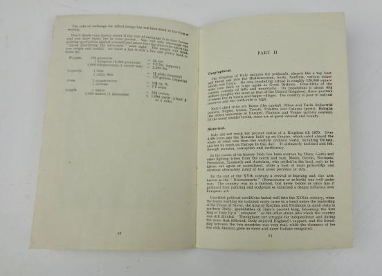 British/US WW2 Italy Soldiers Guide Nice little booklet for British and US WW2 soldiers. “Soldiers guide to Italy” In good condition. Rare to find!