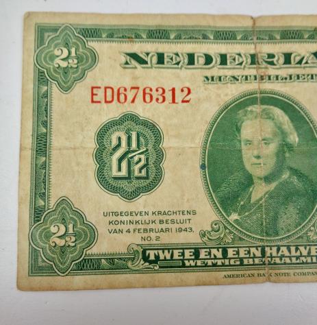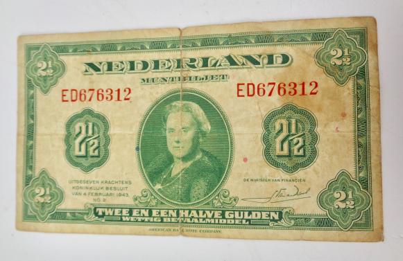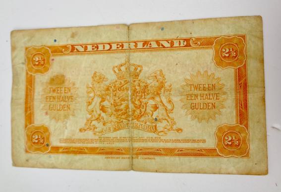 Dutch War-time two and a half Guilders note Nice and rare Dutch war-time “Guilders” note of two and a half “Guilders” dated “1943” In used but very good condition.