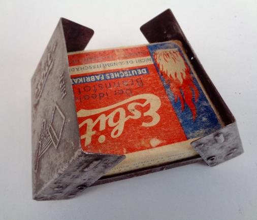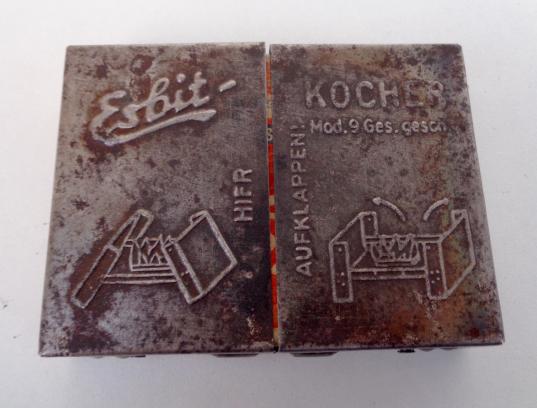 Wehrmacht Esbit Cooker with original Fuel Blok Original WW2 Esbit cooker with its original fuel blok In good condition.