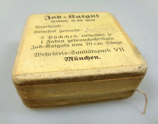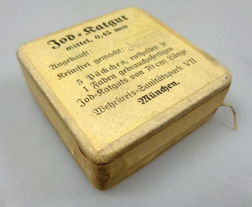 Wehrmacht Medical Suture “Jod-Kathut” nice package of Wehrmacht medical suture. Dated juli 1938. Original carton package never being opened. In very good condition.