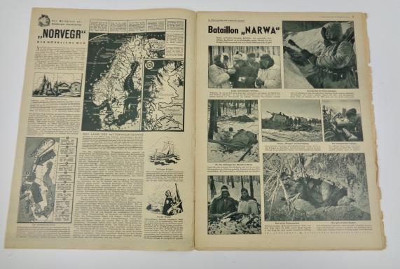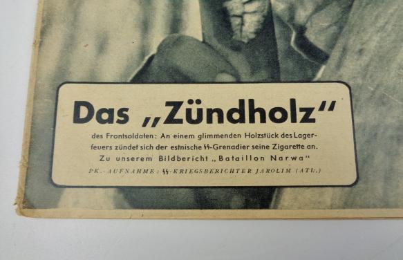 Hamburger Illustrierte Very nice magazine with photograph of an WaffenSS soldier smoking a cigarette in his winter camo Parka Dated February "1944" In very good condition.