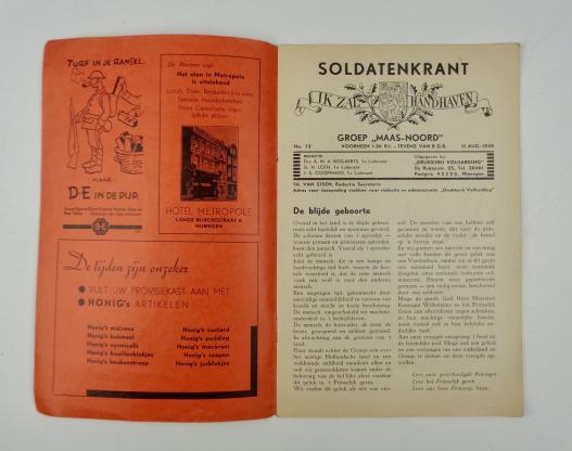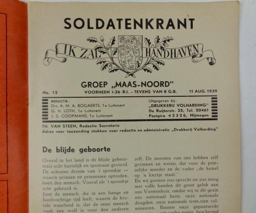 Dutch pre war Soldiers Newspaper Very nice early Dutch pre war soldiers newspaper Dated “August 11nd 1939” with news, fun etc. For the Ditch soldier to kill there spare time. In very good condition.
