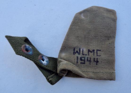 US WW2 Muzzel Cover Canvas US WW2 muzzel cover, nicely marked “WLMC” and dated “1944” In very good condition.