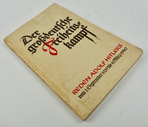Pocket Book with Adolf Hitlers Speeches Nice WW2 picket book “Der Grossdeutches Freiheits Kampf” with speeches of “Adolf Hitler” between “1939-1940” in very good condition.
